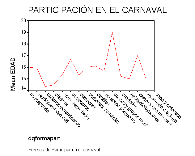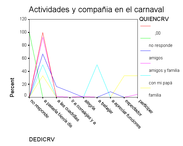 Algunos graficos que muestan las respuestas de los encuestados, sobre participación en el carnaval, formas de participación y compañias